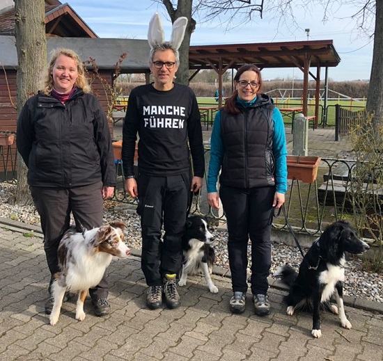 An Ostern haben Katja Dürr mit Lewis, Oliver Schliesser mit Finn und Yvonne Schliesser mit Miles die Begleithundeprüfung bestanden!